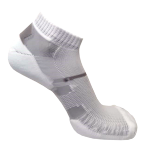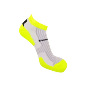A parte superior da meia é confeccionada com tela de lycra revestida vazada, para proporcionar evaporação da umidade.