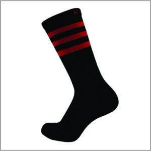 Meia Cano Médio de Compressão 3 Listras Preto com Vermelho