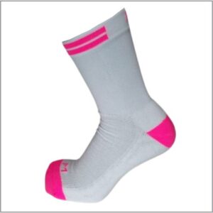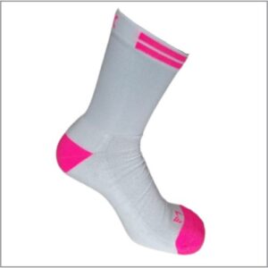 Meia de Ciclismo Cano Médio BK Branco com Rosa Neon