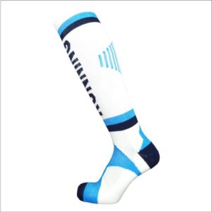 Meião Cano Longo de Compressão – Running Listra Preto c/ Azul